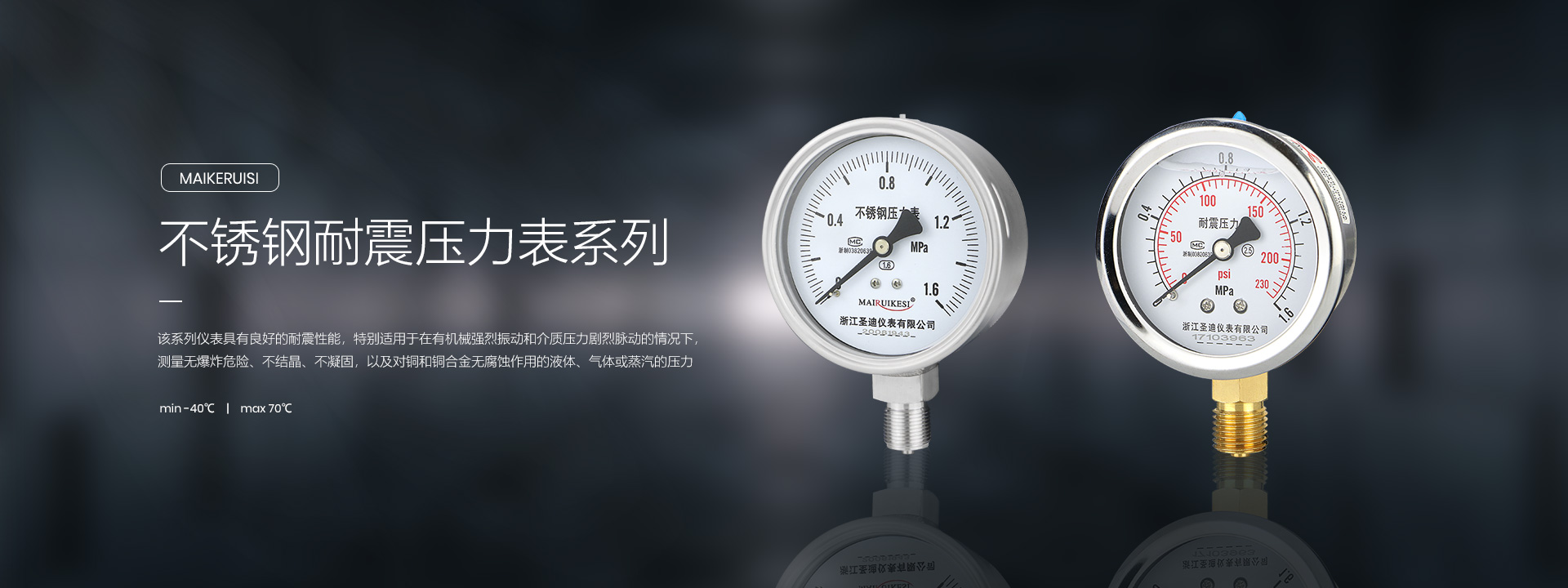 浙江圣迪儀表擁有先進(jìn)的生產(chǎn)設(shè)備,完美的質(zhì)檢儀器和齊全的模具加工設(shè)備,主要生產(chǎn):生產(chǎn)壓力儀表、微差壓表、不銹鋼壓力表表閥、耐震電接點(diǎn)壓力表、電接點(diǎn)壓力表、卡箍式隔膜壓力表、不銹鋼壓力表、壓力變送器等產(chǎn)品,